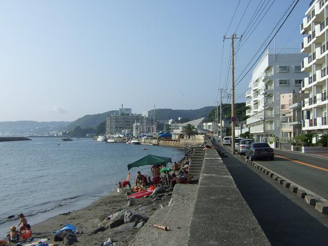 また海岸線の道路は山側から雨水が路面に流れ出している