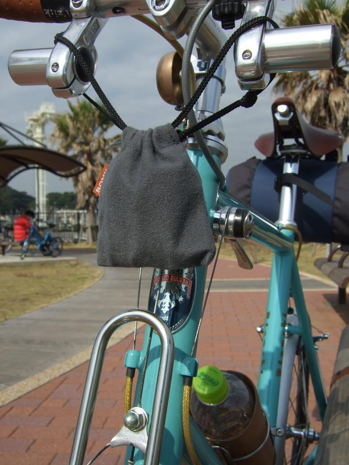 私はエンブレムの前にこんな巾着をぶら下げています。