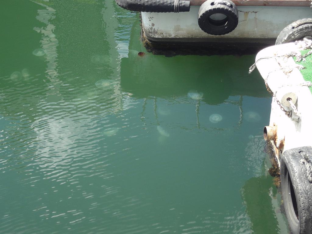 大岡川は横浜港に注ぐ川ですが、満ち潮の逆流に乗ってクラゲが運ばれてきます。