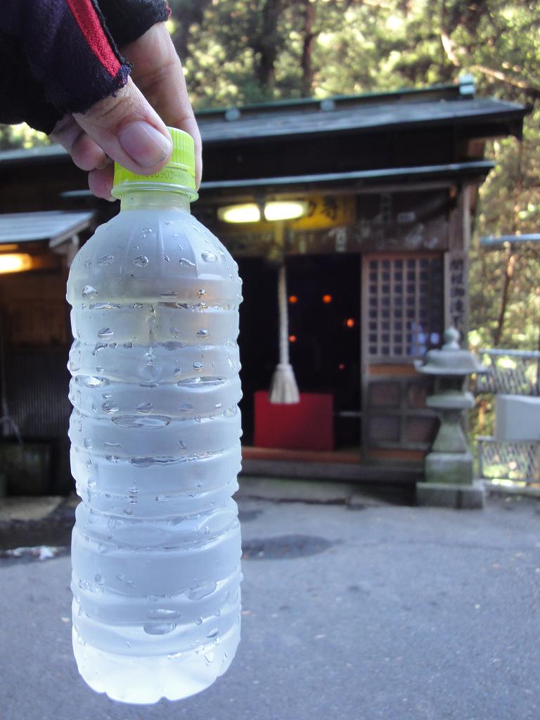 お水を汲んだら、ボトルがすぐに結露です。