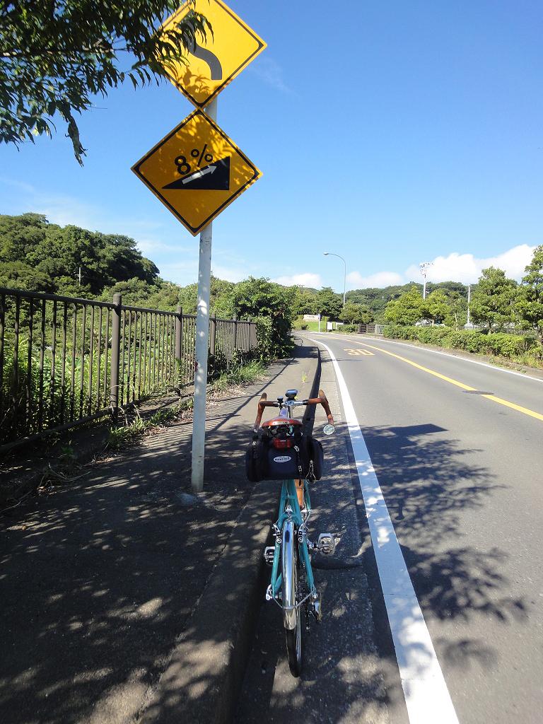 こんな所に8%勾配の看板があった!枝で見えなかったのね。