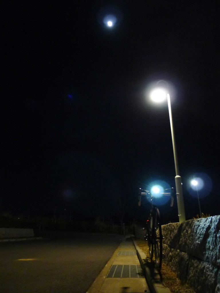 極寒の21時過ぎにスタート。ハンドルがやけに低く感じる。