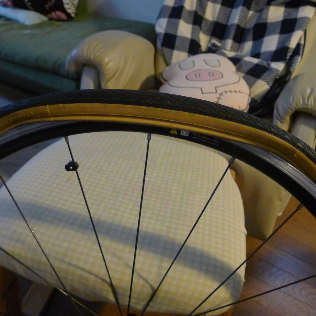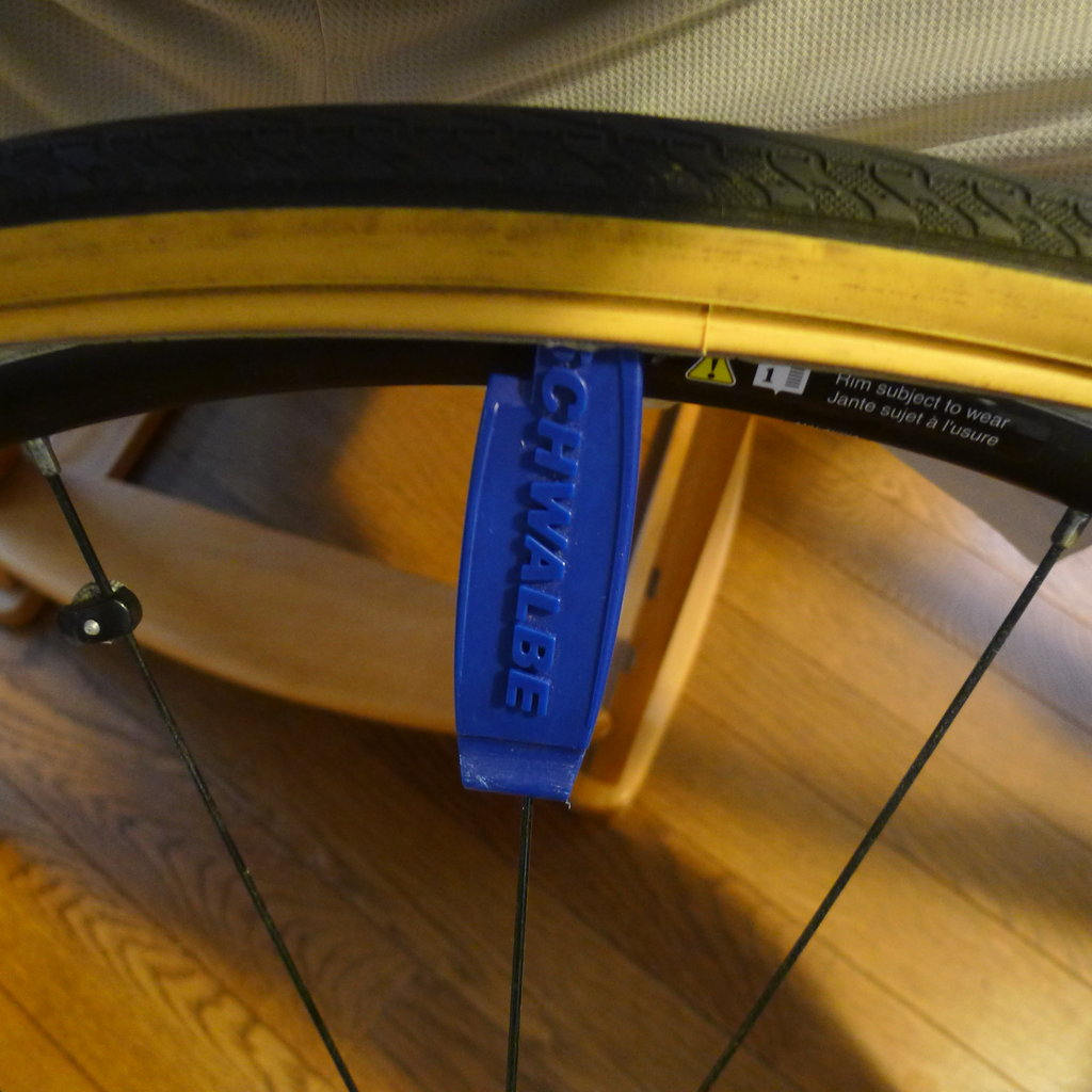 レバーを差し込む場所は中央よりやや外側がオススメ。リムを痛めない力加減を覚えてしまえばスルットパカットで入ります。あはは