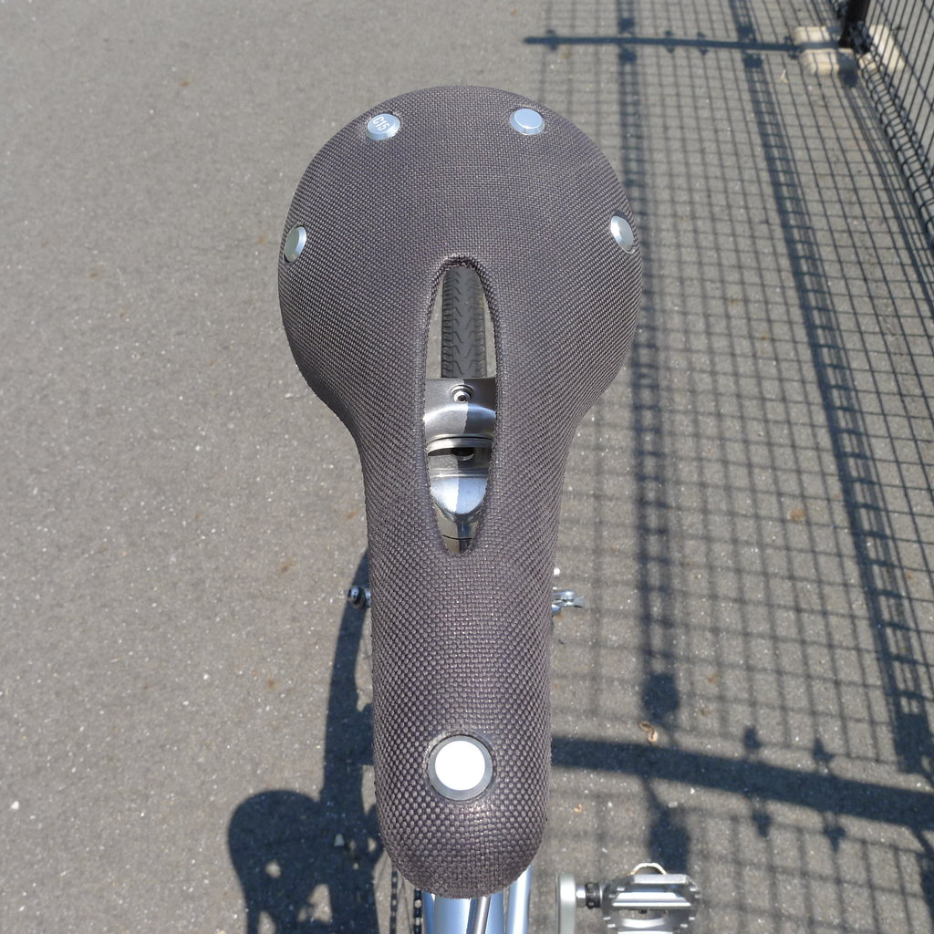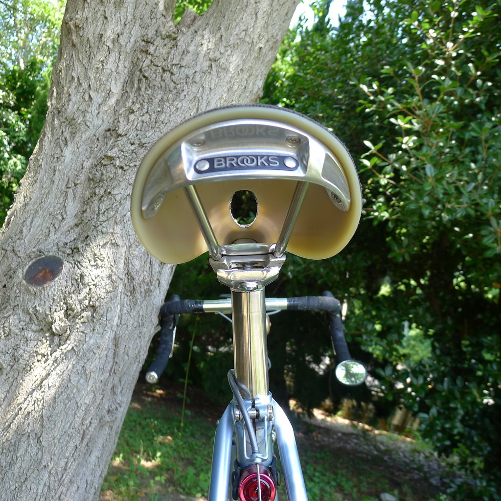 今まで Selle SMP やら ISM やら使っていて、ランドナー向け革サドルは実用性を採って Selle Titanco にするか、見た目を採って BROOKS にするかと悩んだ挙げ句『見た目』に軍配が上がったのですが、その勢いで C17 の採用になりました。