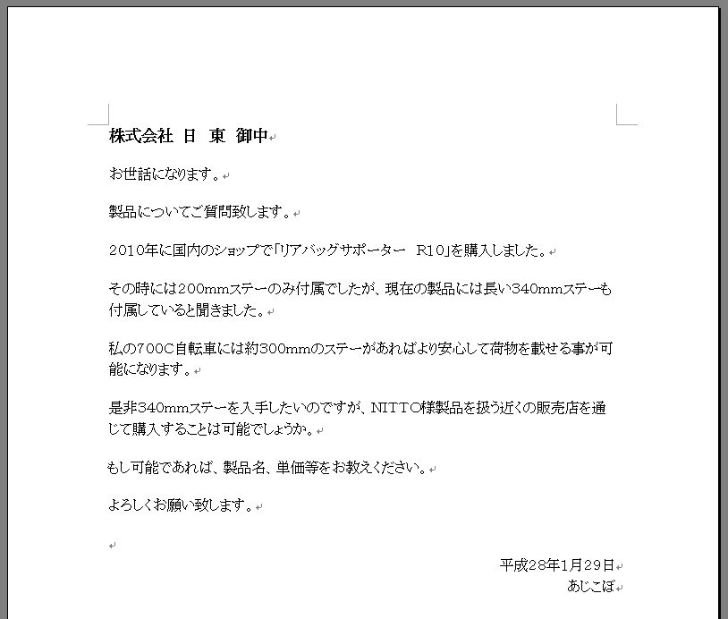 販売店で注文もOKでしたが、今回はお言葉に甘え直送をお願いしました。