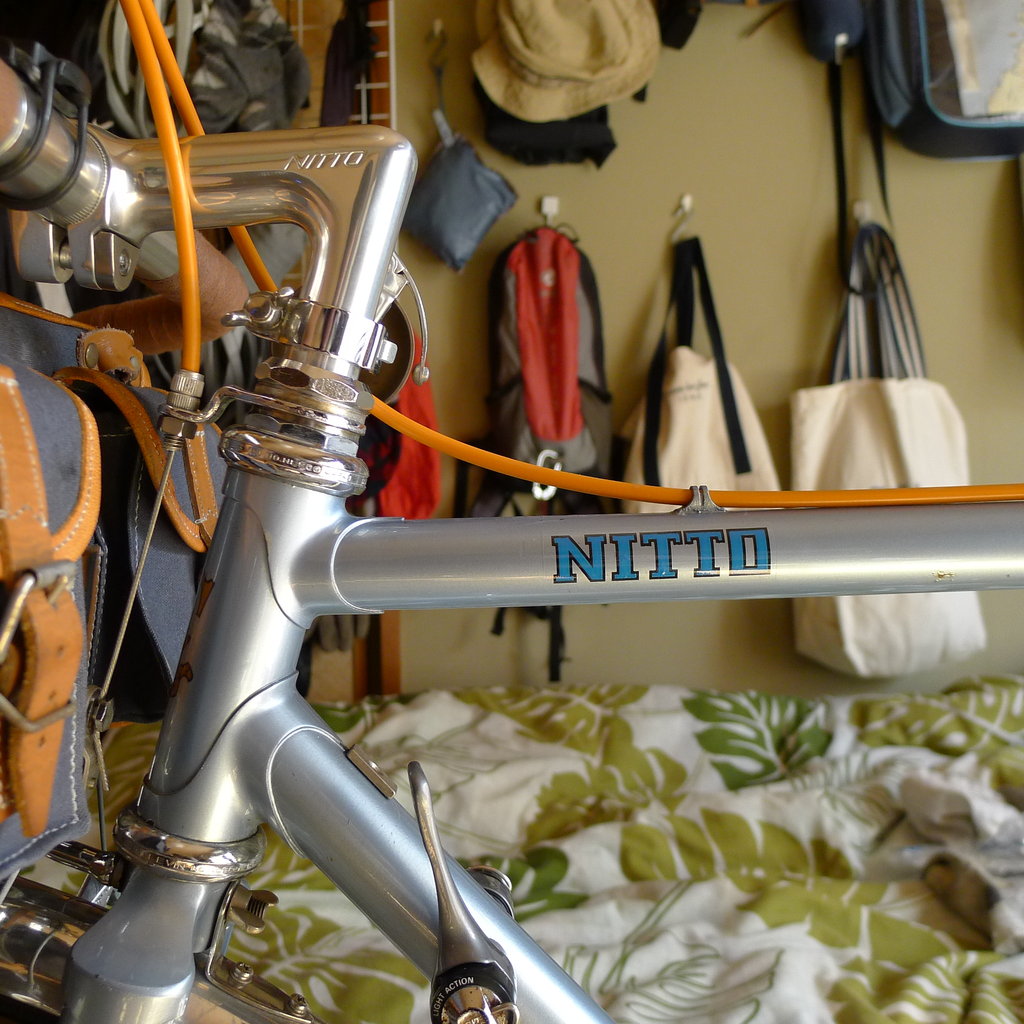 キャリアとシートステーを繋ぐステーはデフォルトの200mmです。ぎりぎりカンチ台座直下で繋がっている状態は見た目に強度が低い感じがしておりました。ヘビーナニモツデグュニャ?