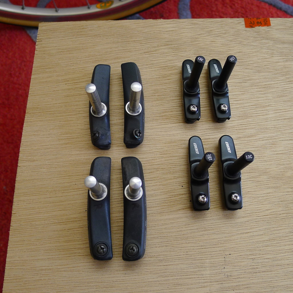 ケルビムから外したカンチブレーキセットだったシュー(約70mm長)を小さいこの三色