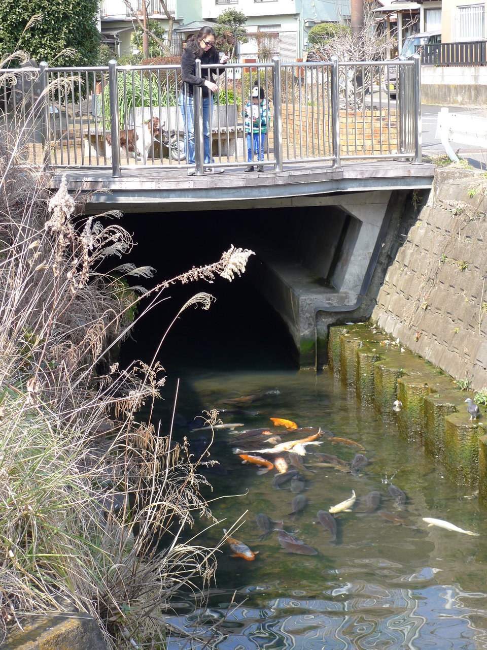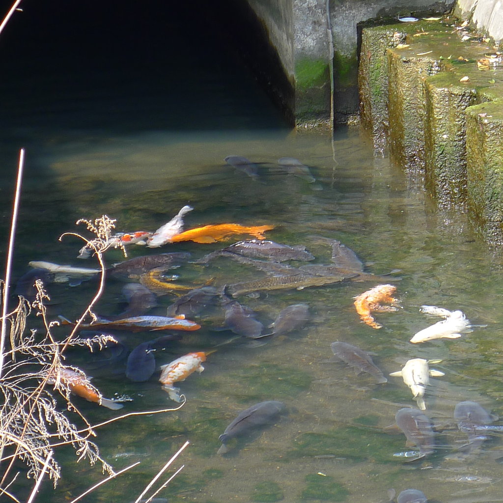 我が町は自称「横浜のリゾート」なれば小さな川にも錦鯉がうようよ泳いでおります。嘘