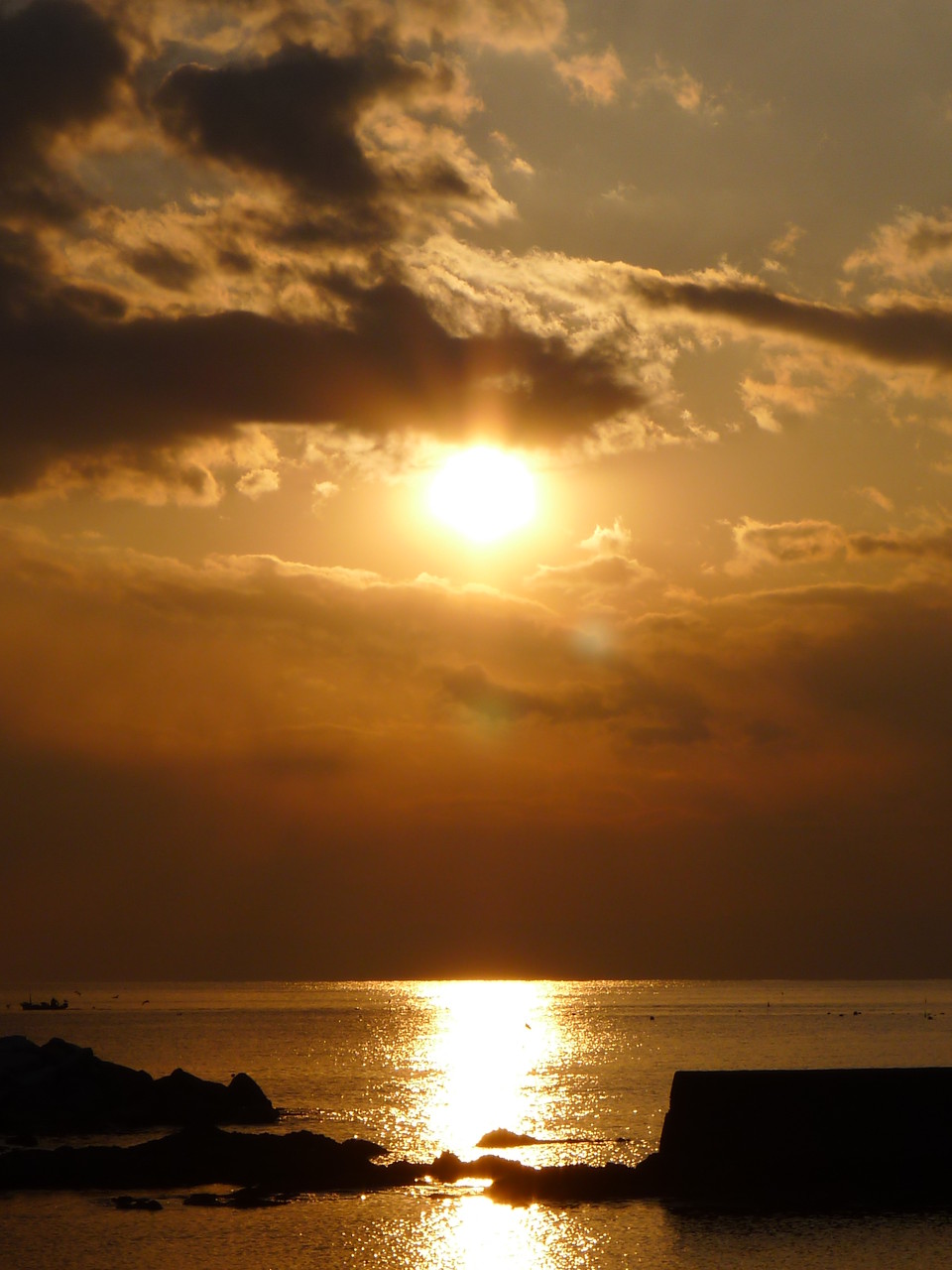 光る海にシルエット映え