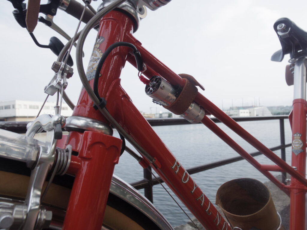試験的にフレームの隙間に移設した電池ケースがダメダメです 暑さでアルミテープの粘着力低下していました 次に備えフロントライト系100%点灯が宿題になりました とにかく暗くなる前に帰りましょう