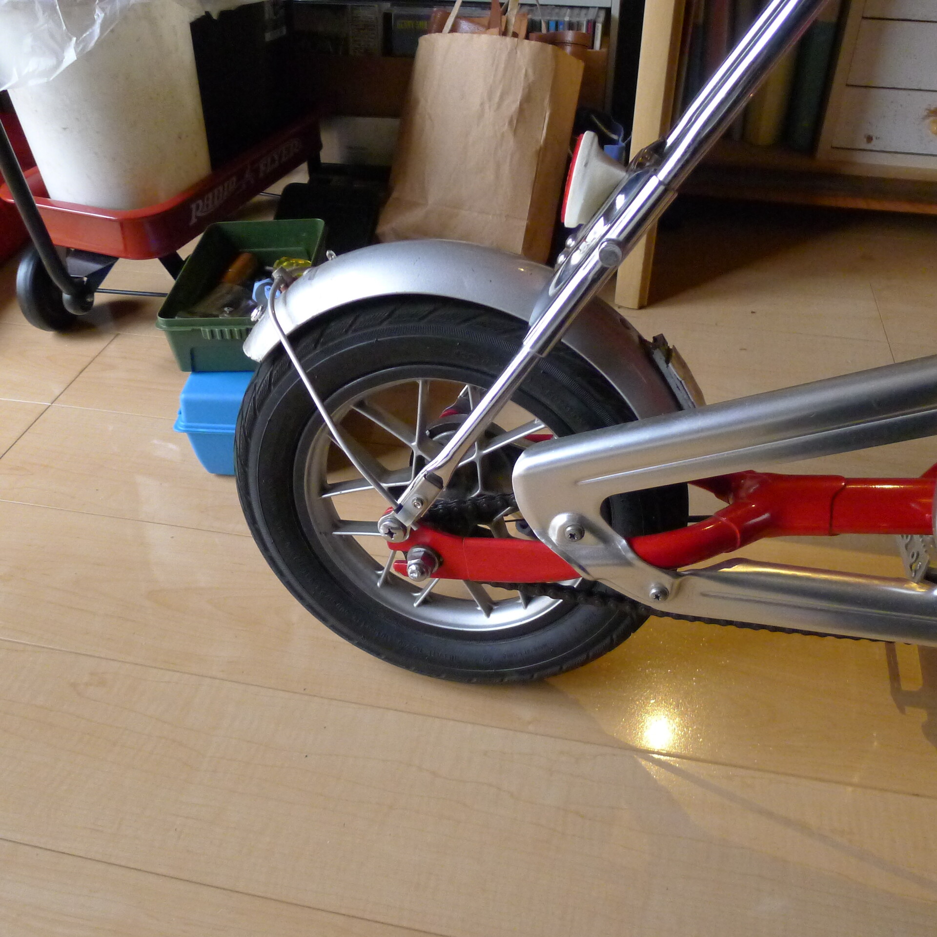 泥除けの改良ナイスです! 革を用いることによって耐久性アップですね。たまに保湿クリームなど塗った方が良いのかな?